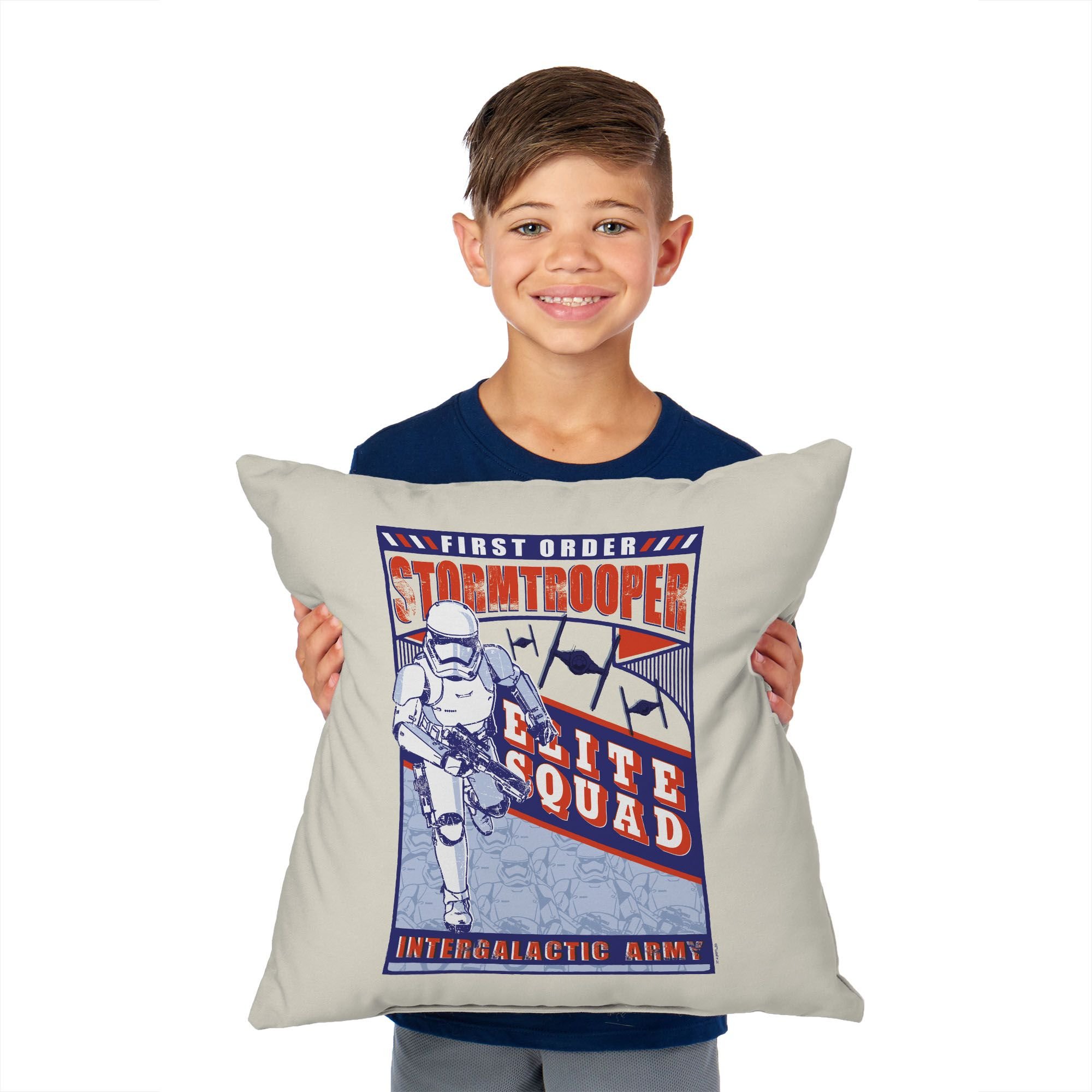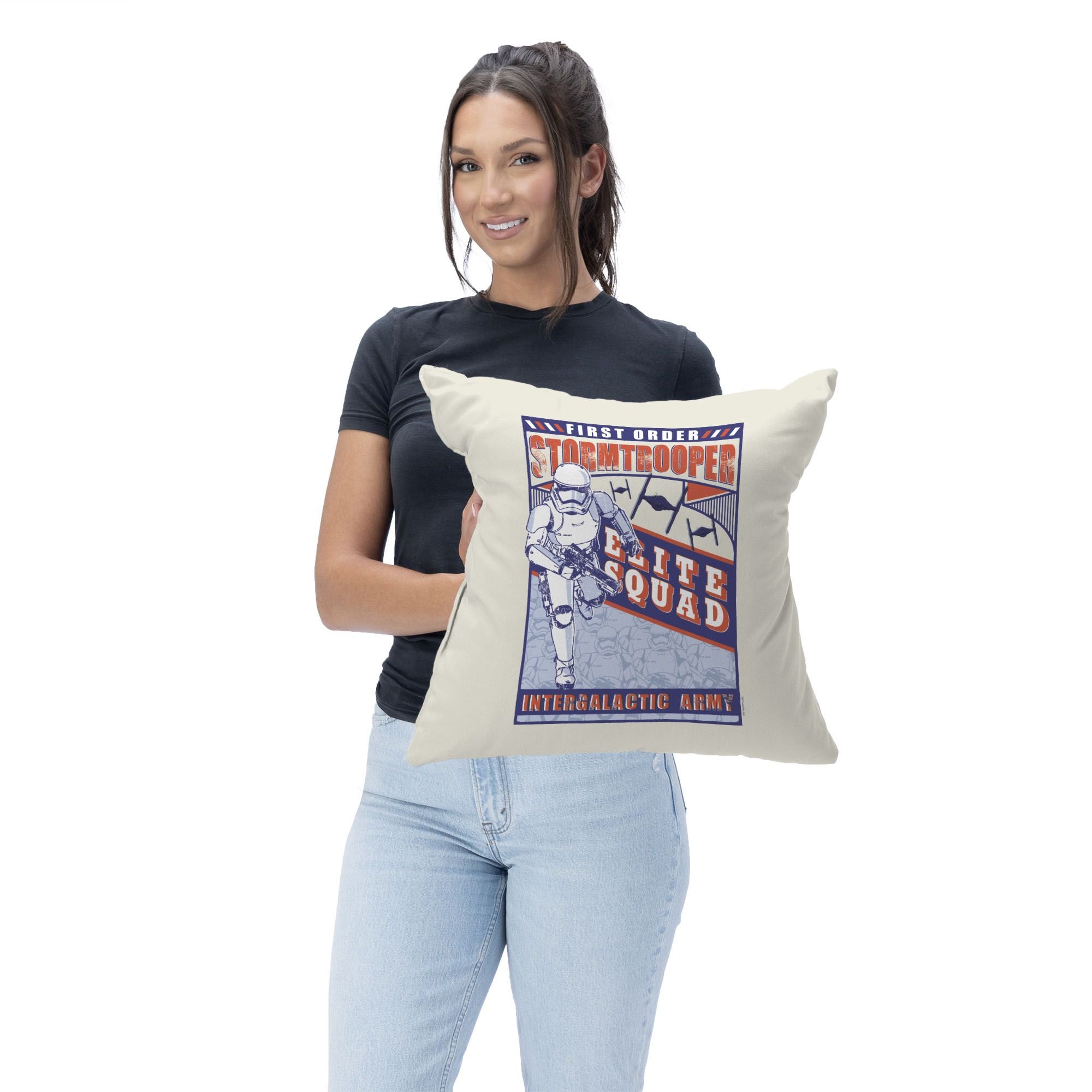 Get ready to add a touch of galactic power to your home with the Disney Star Wars Episode 8 "Vintage Signage Stormtroopers" Throw Pillow! Featuring a captivating vintage signage design, this pillow showcases the iconic Elite Squad Stormtroopers in all their intergalactic glory. The bold imagery captures the fearless and disciplined troops as they march forward, bringing an old-school Star Wars vibe that commands attention.